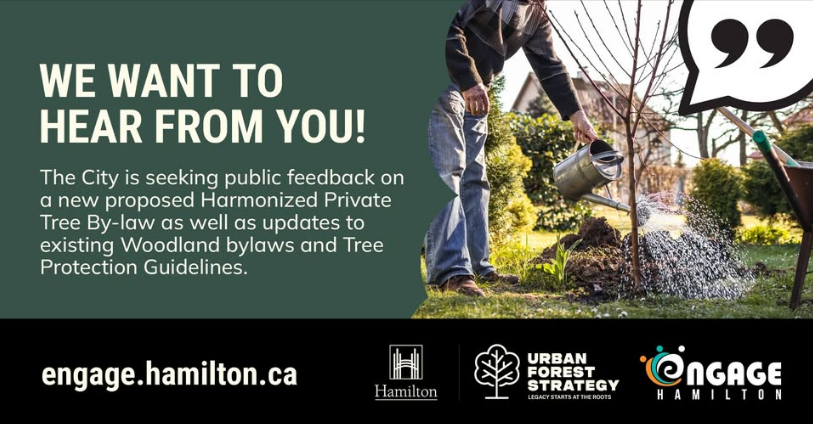 The City survey is open until April 23, 2026 to help shape Hamilton's first city-wide Private Tree Protection Bylaw! Help us make the proposed bylaw stronger by filling out the survey and adding your comments at Engage Hamilton - Harmonized Private Tree Bylaw