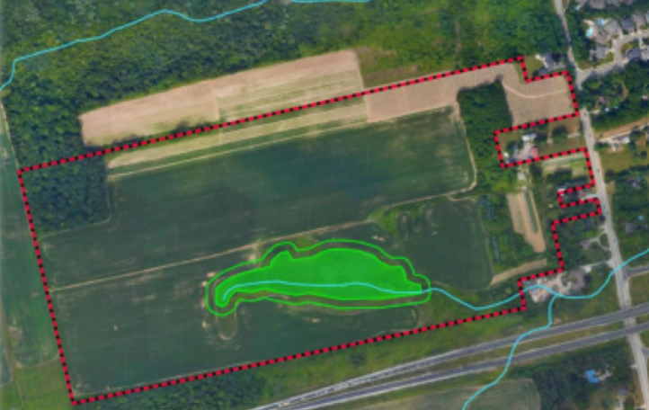 Early in 2021, Toronto developer ONE Properties Inc, with the help of Ancaster developer and agent Urban Solutions, applied to the Hamilton Conservation Authority for a permit to bulldoze a locally significant wetland in Ancaster known as the “Garner Marsh”. Situated behind the former Pumpkin Patch at 140 Garner Rd E their plan was to '“slide over the marsh” to build a 1.3 million square foot warehouse complex with dozens of loading bays and hundreds of parking spots on 89 acres of prime farmland.